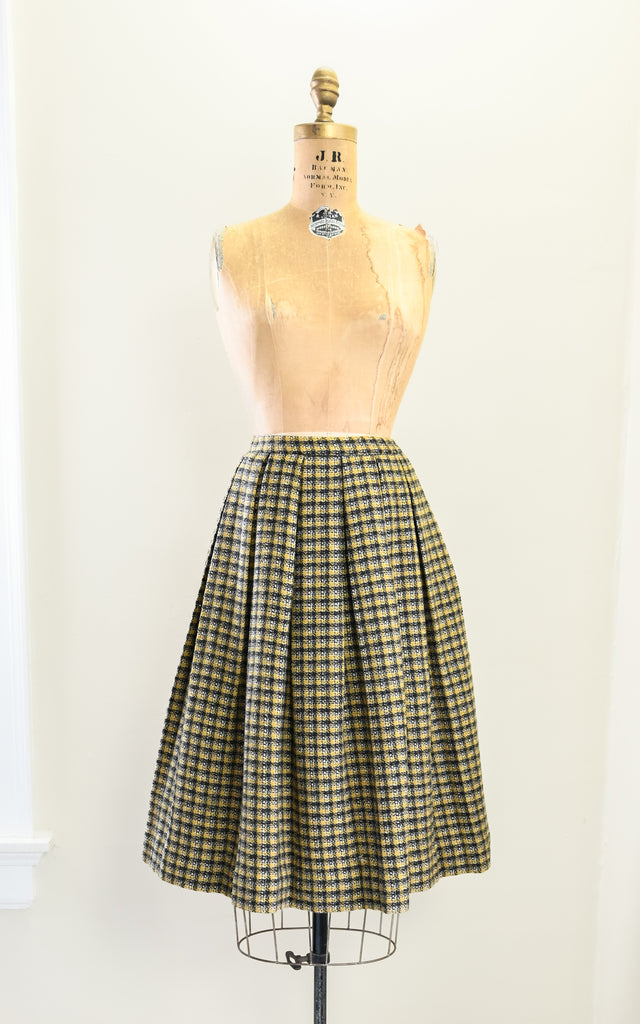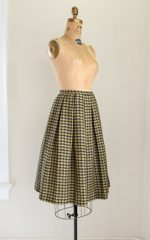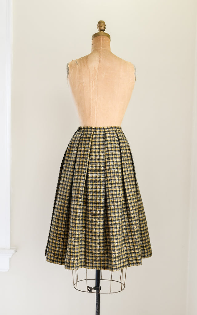 Vintage mid-century wool skirt by Catalina with large pleats and a flared silhouette.