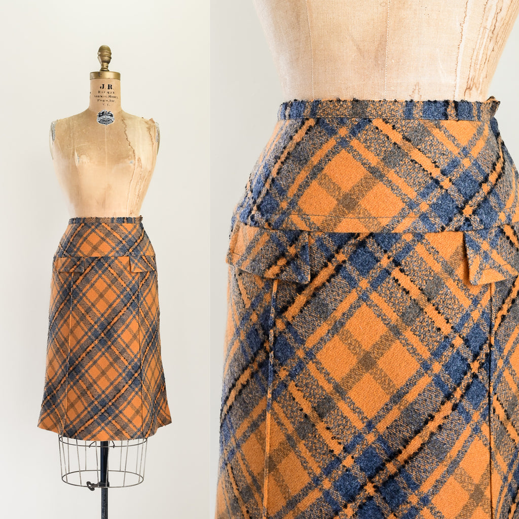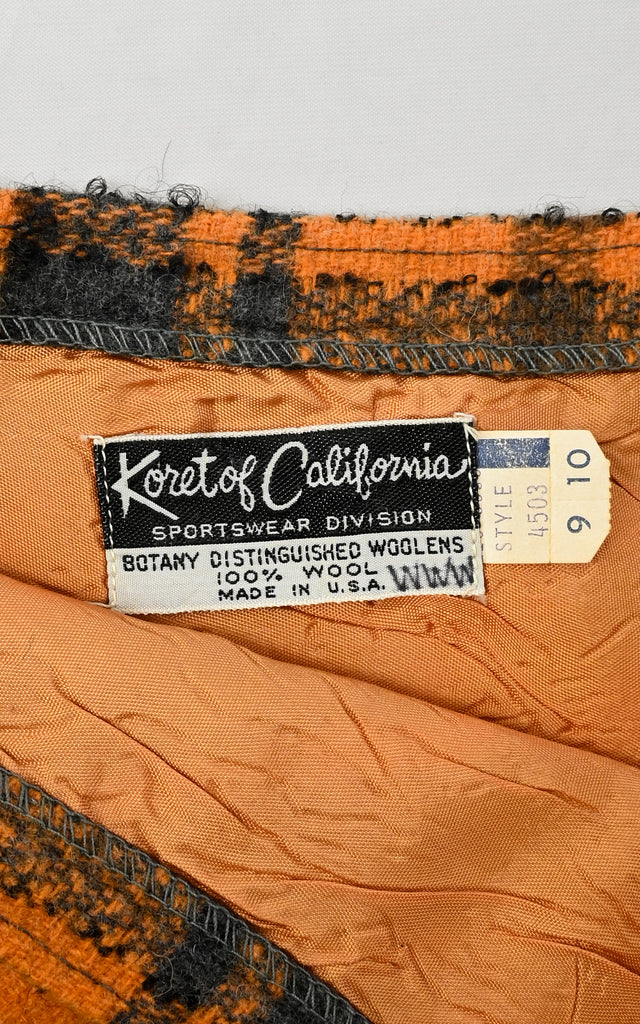 Vintage deadstock mid-century fluted wool skirt with decorative pockets and piping.